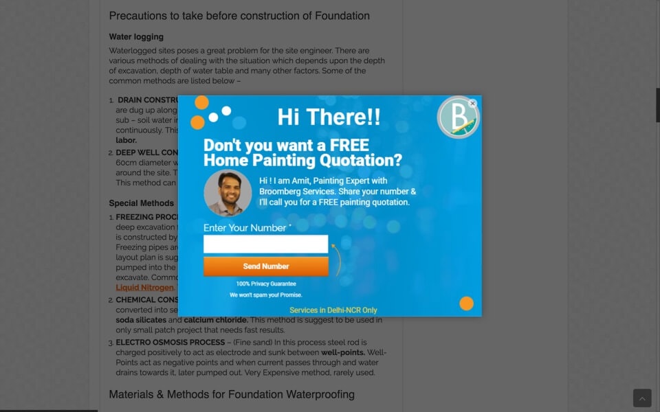 To encourage visitors to convert, Broomberg decided to use popups that offered free consultations and quotes.